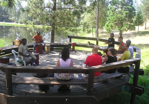 and drum classes, or sharing songs and stories round a fire before bedtime.